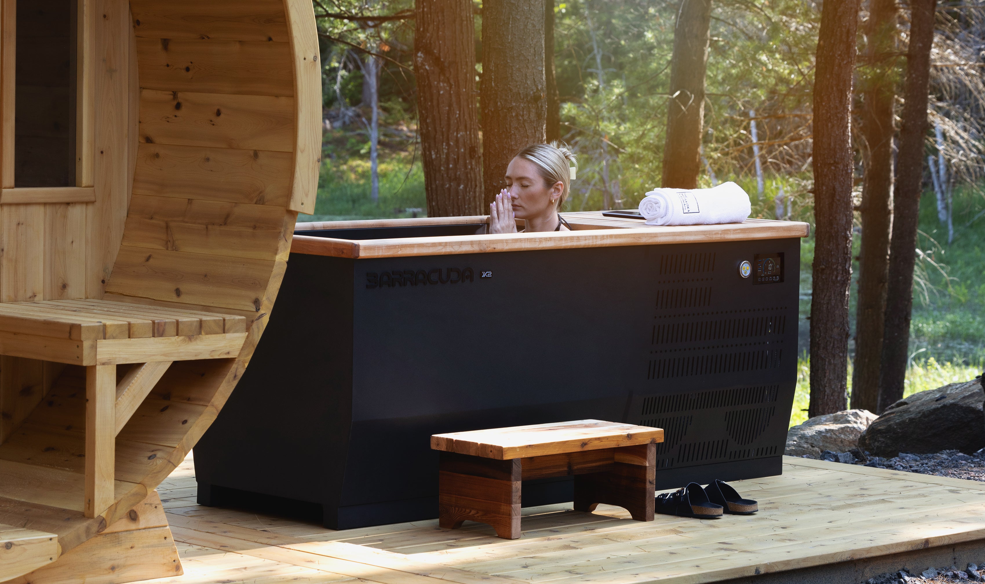 The Barracuda XC delivers the same trusted quality and performance as our X2 in a more space-efficient design. The XC features a 40% smaller footprint than the X2, yet still offers a spacious inner tank for effortless full submersion. As a luxury solution for relaxation and recovery, it provides users with an unparalleled way to rejuvenate their body and mind.